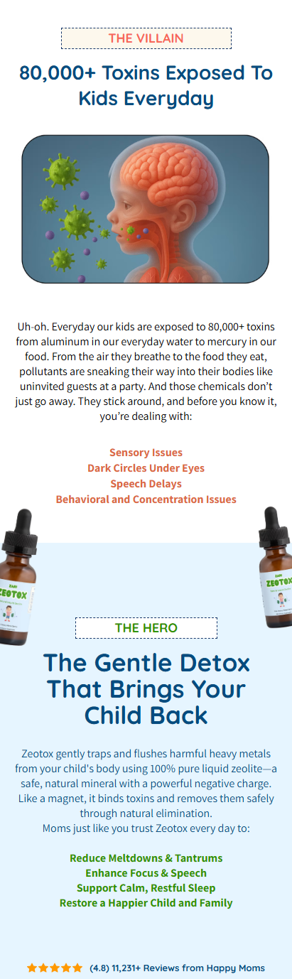 Yes! Our Zeolite Detox is 100% natural, non-toxic, and specifically formulated to be gentle and effective for children. It has been thoroughly tested for safety and purity. We always recommend consulting your pediatrician for any specific concerns.