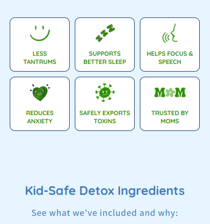 Most parents report noticing positive changes in their child’s focus, mood, and energy levels within the first 7-14 days of consistent use. However, to complete a full detox and ensure there are no toxins in their system, 5 months is recommended at a minimum. Results may vary depending on the individual child and their needs.