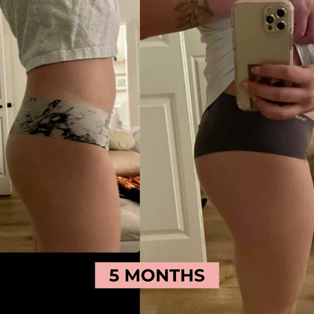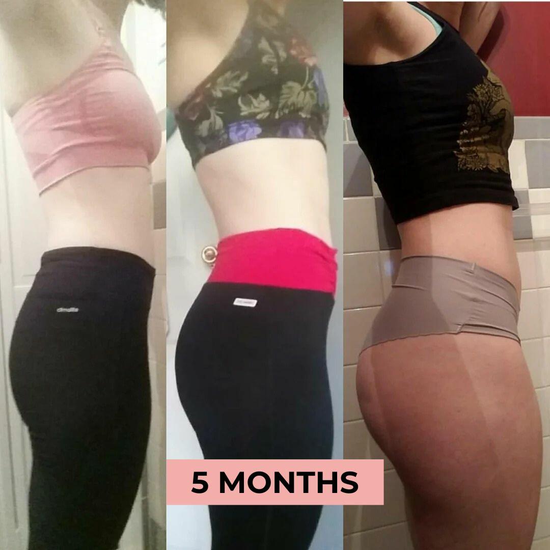 WEEK 5: Noticeable results: rounder, firmer, and more lifted glutes. Increase intensity to keep the progress going strong.